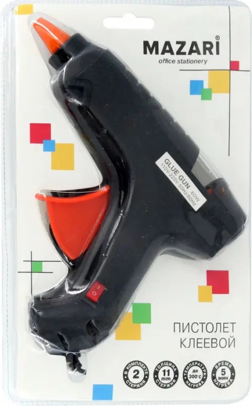 Пистолет клеевой сетевой, 40 Вт, толщина отверстия для стержня 1.1 см, 2 стержня в комплекте, блистерная упаковка