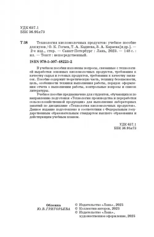 Если вы обнаружили ошибку в описании товара «Технология кисломолочных продуктов» (авторы: Гогаев Олег Казбекович, Караева Залина Амурбековна, Кадиева Тереза Амурхановна), то выделите её мышкой и нажмите Ctrl+Enter. Спасибо, что помогаете нам стать лучше!