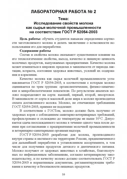 Исследование свойств молока как сырья молочной