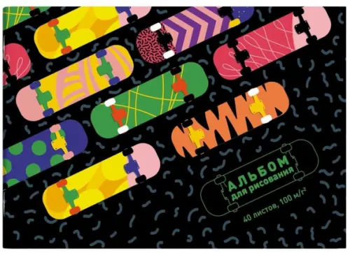 Альбом для рисования 40 л, А4 (285х200 мм), блок - белый офсет 100 г/м2, обложка - полноцветная печать, сплошной УФ-лак, мягкий переплёт (2 скобы)