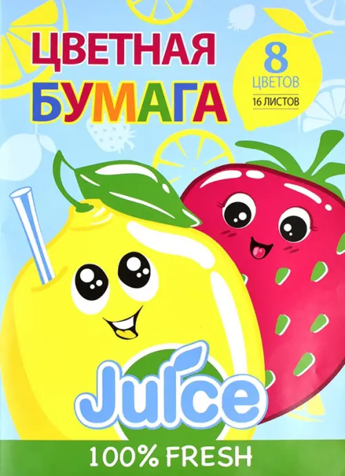 Цветная бумага Фруктовый сок, А4, 16 листов, 8 цветов