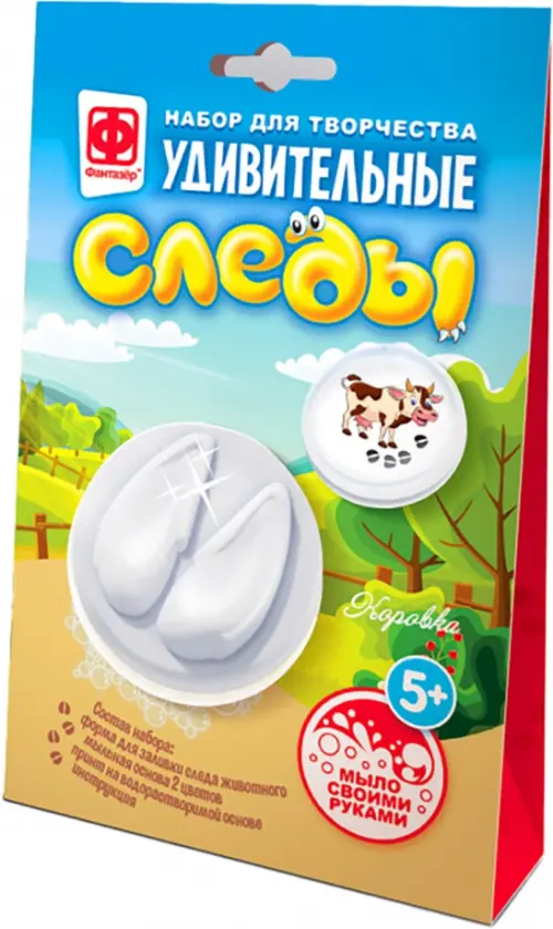 С набором Удивительные следы процесс изучения следов будет необычным, увлекательным, а главное чистым экспериментом, потому что следы животных мы будем делать из мыла, - в наборе для этого уже все есть. Мыло получается в форме 3D следа с одной стороны и картинкой животного, которому принадлежит след, с другой. Такое необычное мыло интересно подержать в руках, рассмотреть и легко запомнить, к тому же внутри вы найдете интересные факты о животных!