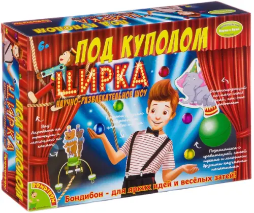 Покажи друзьям невероятные цирковые трюки! Акробаты на трапеции, моноцикл на канате, балансирующий на мяче слон! И всё это - не выходя из дома! Как? С набором от Bondibon - проще простого! В процессе подготовки зрелищных номеров ты познакомишься с такими физическими понятиями, как гравитация, сила трения и многими другими научными понятиями. Набор идеален для получения новой информации в области естествознания, или для закрепления уже пройденных в школе тем. В наборе: пластиковый шар, наклейки со львом и тюленем, 2 короткие и тонкие палочки, прозрачная пластиковая трубка, палочка от мороженого, 2 длинные деревянные палочки, 1 короткая тонкая палочка, 2 зажима для бумаги, 1 бусина, держатель оси, 2 крепежа для картинки, 2 мягких кольца, проволока, 2 колеса, прозрачная пластиковая трубка, 2 грузила, 3 полиэтиленовых пакета, песок, 6 воздушных шаров, картонные фигурки, пластилин, липкая лента, веревка, инструкция.