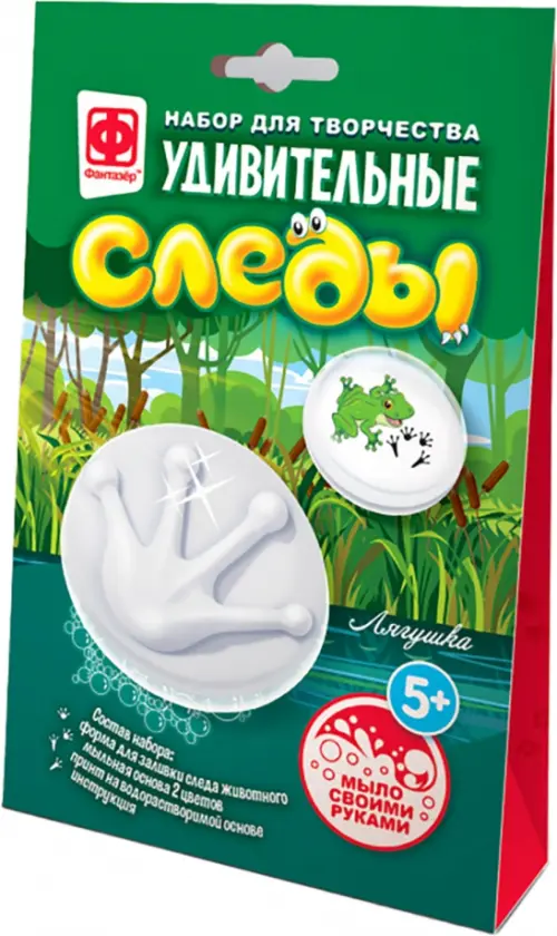 С набором Удивительные следы процесс изучения следов будет необычным, увлекательным, а главное чистым экспериментом, потому что следы животных мы будем делать из мыла, - в наборе для этого уже все есть. Мыло получается в форме 3D следа с одной стороны и картинкой животного, которому принадлежит след, с другой. Такое необычное мыло интересно подержать в руках, рассмотреть и легко запомнить, к тому же внутри вы найдете интересные факты о животных!