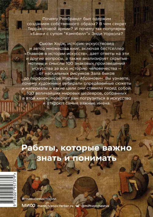 Книга предлагает емкие и исчерпывающие ответы на эти и другие вопросы. С ней вы раскроете секреты 100 из самых знаковых произведений мирового искусства и узнаете мотивы и толкования авторского замысла. Если вы когда-либо смотрели на шедевр искусства с трепетом, но задавались вопросом, что он означает, книга поможет вам найти ответ.