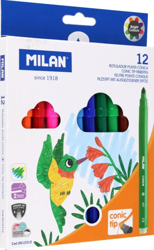 Фломастеры на водной основе, легко смываются с рук, мебели, одежды. Яркие, безопасные цветные пигменты, соответствующие Европейскому стандарту качества и безопасности детских товаров. Прочный корпус и пишущий узел. Фломастеры с коническим наконечником для создания толстых линий.