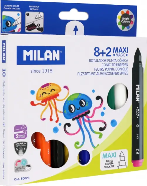 Фломастеры Maxi Magic , 8 цветов + 2 меняющих цвет