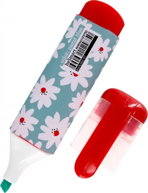 Текстовыделитель голубой. Скошенный наконечник обеспечивает толщину линии письма от 1 до 5 мм. Стойкие чернила позволяют использовать текстовыделитель на бумаге любой плотности. Колпачок снабжен специальным зажимом, с помощью которого можно прикрепить маркер к любой обложке.