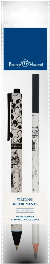 Ручка шариковая автоматическая ArtClick, синяя и карандаш чернографитный ArtGraphix. Человекокот, HB