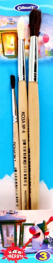 Набор кистей 3 штуки пони круглая №1, №6, коза круглая №4. Набор кистей для рисования из натурального волоса. Черенки кистей с закругленным концом. Изготовлены из качественной древесины. Нержавеющая металлическая обойма без шва. Кисть хорошо держит форму и отлично подходит для детского творчества. Прозрачная упаковка с европодвесом.