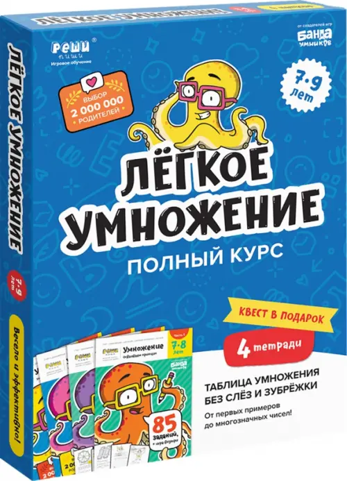«Как помочь ребёнку выучить таблицу умножения?» — вопрос, с которым сталкиваются родители каждого школьника. Можно всё вызубрить и решить сотни однотипных примеров, но есть способ получше! С набором «Лёгкое умножение» ребёнок поэтапно поймёт и быстро запомнит принципы умножения, выучит таблицу и даст фору всем одноклассникам! В результате даже умножение в столбик будет простым как 2х2.
