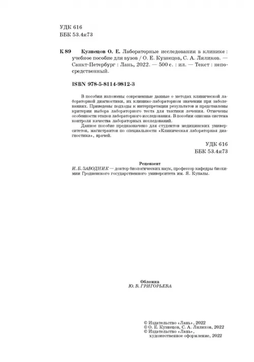 Если вы обнаружили ошибку в описании товара «Лабораторные исследования в клинике. Учебное пособие для вузов» (авторы: Кузнецов Олег Евгеньевич, Ляликов Сергей Александрович), то выделите её мышкой и нажмите Ctrl+Enter. Спасибо, что помогаете нам стать лучше!