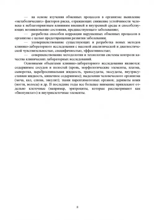 В пособии изложены современные данные о методах клинической лабораторной диагностики, их клинико-лабораторном значении при заболеваниях. Приведены подходы к интерпретации результатов и представлены критерии выбора лабораторного теста для тактики лечения. Отмечены особенности этапов лабораторного исследования. В пособии описана система контроля качества лабораторных исследований.