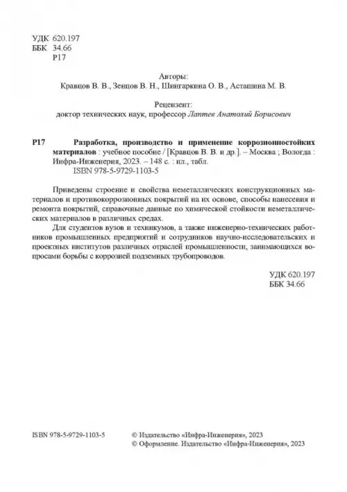 Если вы обнаружили ошибку в описании товара «Разработка, производство и применение коррозионностойких материалов» (авторы: Шингаркина Ольга Викторовна, Зенцов Вячеслав Николаевич, Кравцов Виктор Васильевич), то выделите её мышкой и нажмите Ctrl+Enter. Спасибо, что помогаете нам стать лучше!