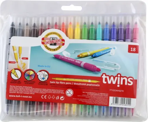 Фломастеры Twin, 18 цветов, двухсторонние, смываемые