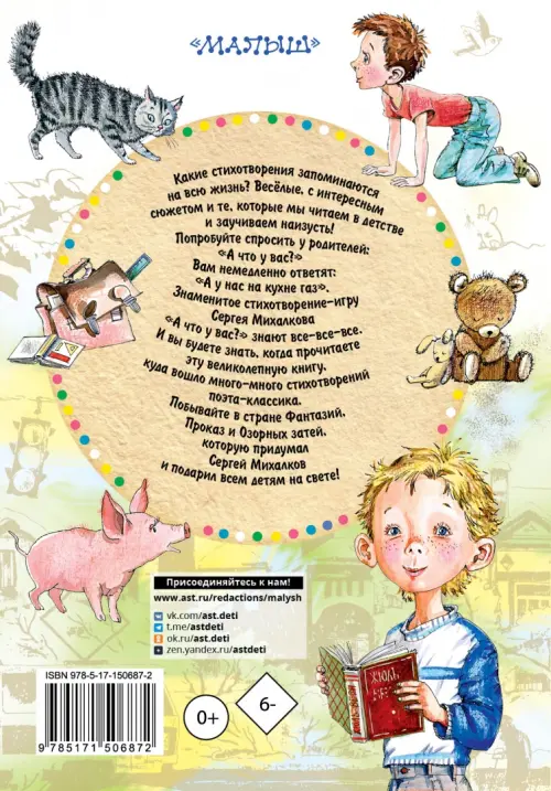 Если вы обнаружили ошибку в описании товара «А что у вас? Любимые стихи» (авторы: Михалков Сергей Владимирович), то выделите её мышкой и нажмите Ctrl+Enter. Спасибо, что помогаете нам стать лучше!
