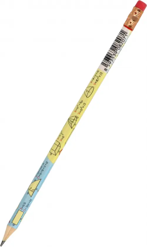 Отличная "шпаргалка" для учащихся: универсальный чернографитный карандаш с основными геометрическими формулами на корпусе, прекрасно подходит для школьников и молодежи.