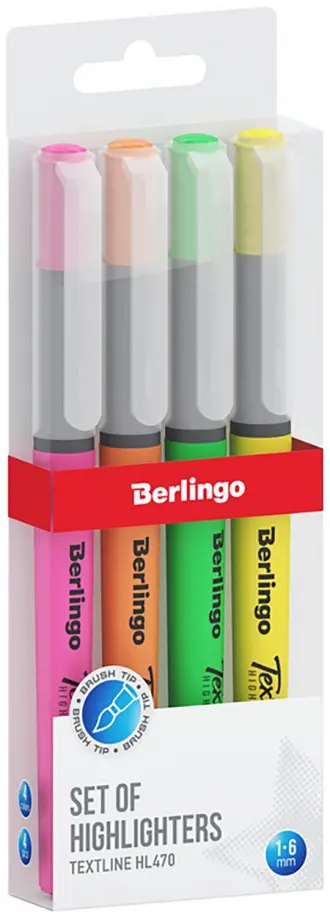 Набор текстовыделителей с пишущим узлом в форме кисти позволяет максимально свободно варьировать ширину линии письма и использовать выделители не только в учебных, но и художественных и прочих креативных работах. В текстовыделителях использованы неоновые чернила классических цветов. Корпус выделителей выполнен с мягким резиновым грипом, значительно повышающим комфорт при использовании, и окрашен в цвет чернил, что значительно облегчает поиск нужного оттенка. Удобный пластиковый клип позволяет легко закрепить текстовыделители на блокноте, ежедневнике или планшете.