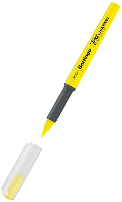 Текстовыделитель с пишущим узлом в форме кисти позволяет максимально свободно варьировать ширину линии письма и использовать выделители не только в учебных, но и художественных и прочих креативных работах. В текстовыделителе использованы чернила классического неонового желтого цвета. Корпус выделителя выполнен с мягким резиновым грипом, значительно повышающим комфорт при использовании, и окрашен в цвет чернил, что значительно облегчает поиск нужного оттенка. Удобный пластиковый клип позволяет легко закрепить текстовыделитель на блокноте, ежедневнике или планшете.
