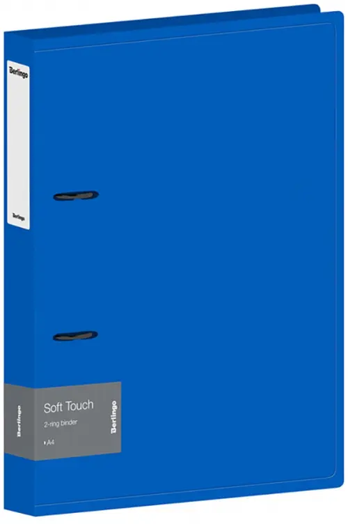 Папка на 2-х D-кольцах Berlingo серии Soft Touch формата А4 - стильный аксессуар для офиса и учёбы с плотной обложкой с приятной софт-тач фактурой. Изготовлена из высококачественного полипропилена толщиной 700 мкм с особой фактурой с эффектом софт-тач. Увеличенная ширина корешка 40 мм, что позволяет хранить до 250 листов. Ширина папки составляет 250мм. Папка оснащена стильными черными кольцами, которые крепятся на заднюю стенку. Специальная D-форма колец диаметром 20 мм помогает удобно и ровно хранить документы, которые могут быть выровнены по левому краю, благодаря боковой вертикальной стенке кольца. Вместимость папки – 250 листов. Специальные формовые отверстия в обложке служат для надежного защелкивания папки в сложенном виде, предотвращают случайное открытие обложки и замятие документов внутри при хранении и транспортировке. На внутренней стороне обложки папка оснащена плотным прозрачным карманом для удобного хранения мелочей: ручки, заметок, визиток, дисков, флешек и др. Корешок папки оклеен специальным стикером для подписи содержимого, что позволяет легко и удобно организовывать документы на полке. Дополнительный стикер в комплекте. Размер папки составляет 310*250*40 мм. Упакована в индивидуальный прозрачный пакет по форме. Папка оснащена съемным стикером с выходной информацией и штрих-кодом.
