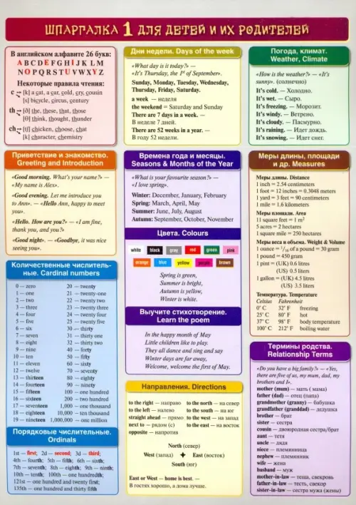 Шпаргалка по английскому языку для детей и их родителей.