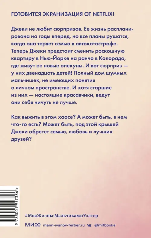 Джеки не любит сюрпризов. Ее жизнь распланирована на годы вперед, но все планы рушатся, когда она теряет семью в автокатастрофе. Теперь Джеки предстоит сменить роскошную квартиру в Нью-Йорке на ранчо в Колорадо, где живут ее новые опекуны. И вот сюрприз у них двенадцать детей! Полный дом шумных мальчишек, не имеющих понятия о личном пространстве. И хотя старшие из них - настоящие красавчики, ведут они себя ничуть не лучше.