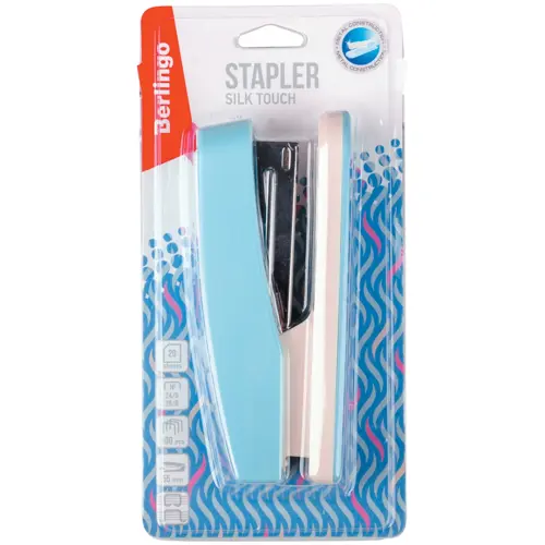 Стильный канцелярский степлер Berlingo Silk Touch отлично подходит для ежедневного использования на рабочем месте. Степлер вмещает 100 скоб размером №24/6, 26/6, имеет 2 типа скрепления. Сшивает до 20 листов. Глубина захвата – 55 мм.