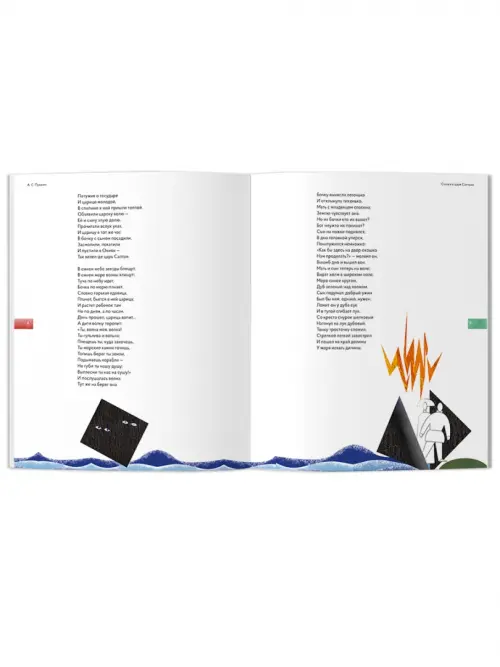 Текст любимой сказки сопровождают иллюстрации в стиле супрематиста Казимира Малевича. Его стиль, изменивший навсегда мир искусства, отлично дополняет историю о воссоединении царя Салтана и сына его Гвидона.