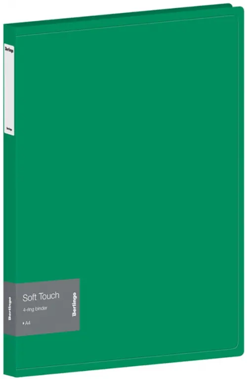 Папка на 4-х D-кольцах Berlingo серии Soft Touch формата А4 - стильный аксессуар для офиса и учёбы с плотной обложкой с приятной софт-тач фактурой. Изготовлена из высококачественного полипропилена толщиной 700 мкм с особой фактурой с эффектом софт-тач. Ширина корешка составляет 24 мм. Ширина папки составляет 250мм. Папка оснащена стильными черными кольцами, которые крепятся на заднюю стенку. Специальная D-форма колец диаметром 20 мм помогает удобно и ровно хранить документы, которые могут быть выровнены по левому краю, благодаря боковой вертикальной стенке кольца. Вместимость папки – 150 листов. На внутренней стороне обложки папка оснащена плотным прозрачным карманом для удобного хранения мелочей: ручки, заметок, визиток, дисков, флешек и др. Корешок папки оклеен специальным стикером для подписи содержимого, что позволяет легко и удобно организовывать документы на полке. Размер папки составляет 310*250*24 мм. Упакована в индивидуальный прозрачный пакет по форме. Папка оснащена съемным стикером с выходной информацией и штрих-кодом.