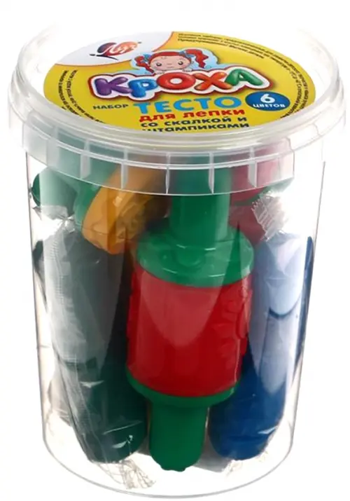 Тесто для лепки Кроха, со скалкой и штампиками, 6 цветов