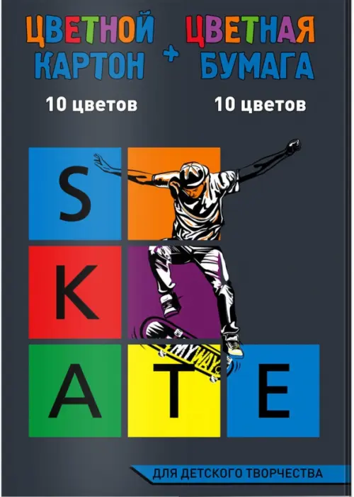 Цветной картон и цветная бумага Скейт. Трюк, 10 цветов, 26 листов