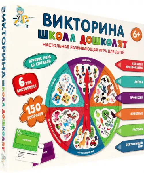 Настольная развивающая игра-викторина «Школа дошколят» позволяет расширить кругозор и проверить уровень знаний в таких областях, как животный мир, растения, окружающий мир, сказки и мультфильмы, логика, профессии. В эту игру можно играть с друзьями!