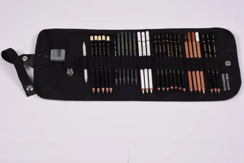 Великолепный набор для художников-графиков и любителей рисования. Набор упакован в практичный текстильный пенал-рулон на кнопке, который очень удобно использовать как для хранения, так и для переноски художественных материалов.