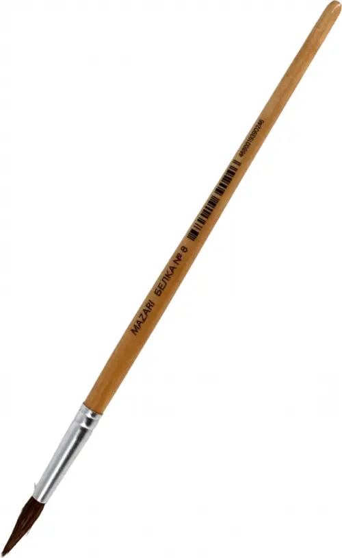 Кисть художественная, белка, №8, круглая, обойма обжимная, ручка деревянная, лакированная, ОПП- упаковка