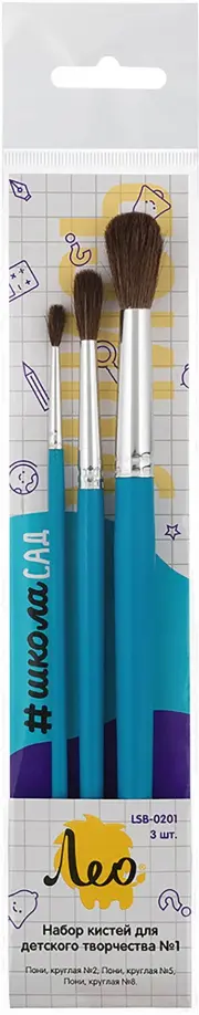 Не самый дешевый набор кистей будем откровенны... Но цену бренд "Лео" компенсирует качеством продукта. Это действительно волос пони. Понравились покрытые стильным лаком деревянные ручки детям. Двойное обжатие обоймы не дает её расшатать, когда по листу в азарте прикладываются со всей силы. Приятное ощущение прочности и надежности. Так что...