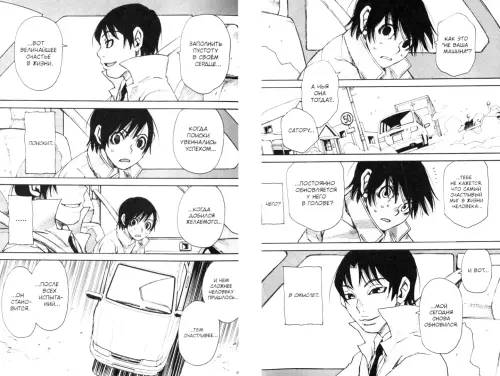 Влекомый смутной верой в то, что с Мисато что-то случится, и желанием отыскать ставшую одинокой девочку, Сатору вместе с Ясиро преследует грузовик компании "Продукты Сиратори". Сидя в машине, они заводят беседу, похожую на разговор отца с сыном...