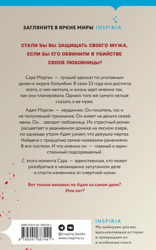 С этого момента Сара - единственная, кто может спасти Адама от смертной казни. Ей приходится взяться за свое самое сложное дело в своей практике: защищать в суде собственного мужа - человека, обвиняемого в убийстве своей любовницы.