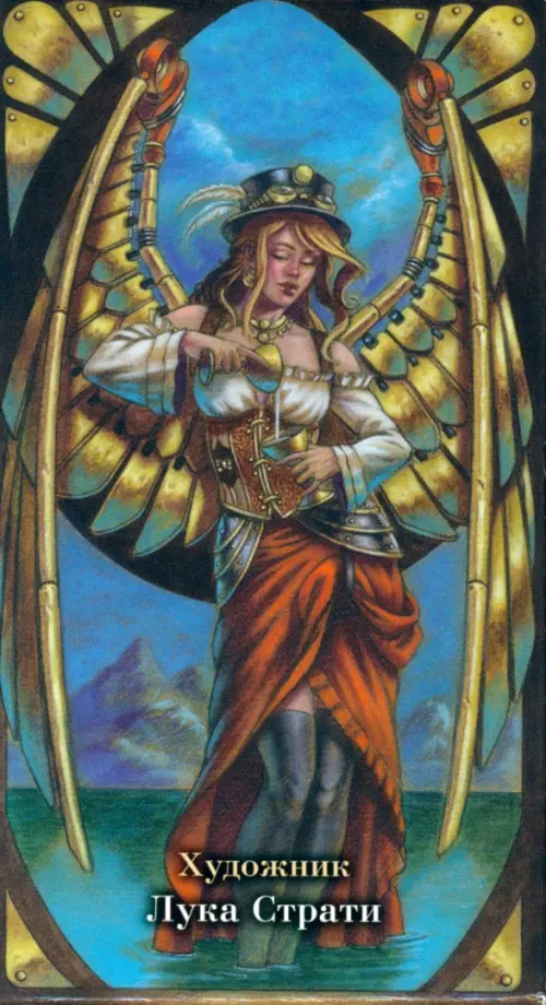Таро в стиле Стимпанк Арт-Нуво - это механические ангелы, заводные звёзды, искатели приключений на просторах бескрайнего неба и неизведанных берегов; это и ещё многое другое. Каждая карта этой колоды наполнена экзотикой, красотой и одновременно чудесами современной индустриальной романтики.