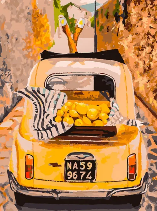 Живопись на холсте. Машина с лимонами