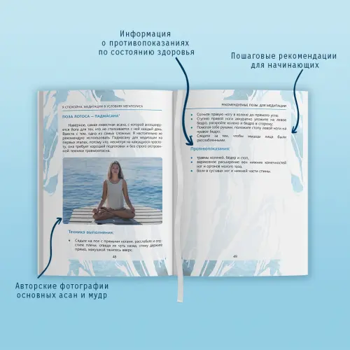 Это медитации для женщин, желающих освободиться от страхов и сомнений, достичь спокойствия, подобного тому, что царит в океанских глубинах, и обрести навык "просто быть". В книге собраны базовые правила медитации, фотографии основных асан (поз) и мудр (положений кистей рук), подробные рекомендации по технике выполнения и личные секреты и советы автора для тех, кто только начинает осваивать искусство медитации.