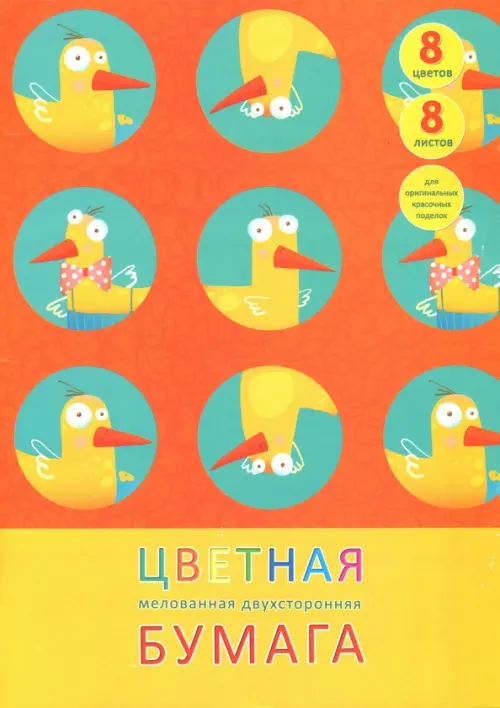 Альбомы и цветная бумагаЕсли вы обнаружили ошибку в описании товара «Бумага цветная двухсторонняя мелованная Приключения утки, 8 листов, 8 цветов, А4», то выделите её мышкой и нажмите Ctrl+Enter. Спасибо, что помогаете нам стать лучше!