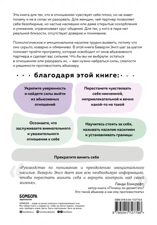 Если вы обнаружили ошибку в описании товара «Эмоциональное насилие. Исцеление от стыда, которого вы не заслуживаете» (авторы: Энгл Беверли), то выделите её мышкой и нажмите Ctrl+Enter. Спасибо, что помогаете нам стать лучше!