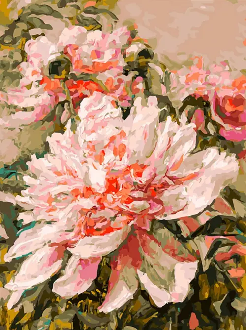 Живопись на холсте. Нежный пион
