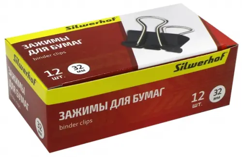 Зажимы для бумаг (32 мм, 12 штук, черный) (510004)