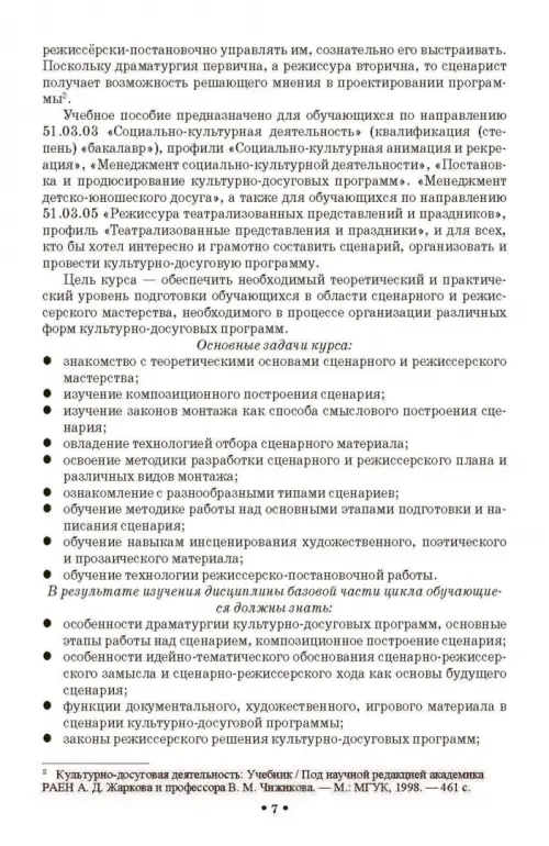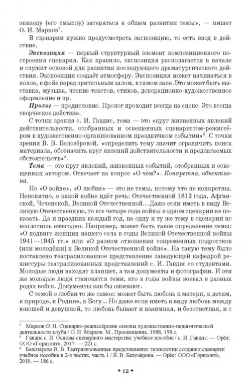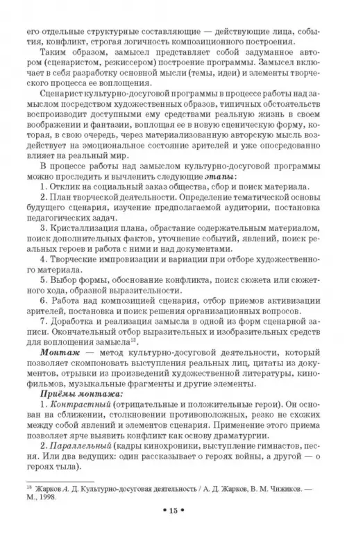 В учебно-методическом пособии раскрываются теоретические и практические аспекты сценарно-режиссёрских основ, технология составления сценариев и постановки различных видов культурно-досуговых программ.