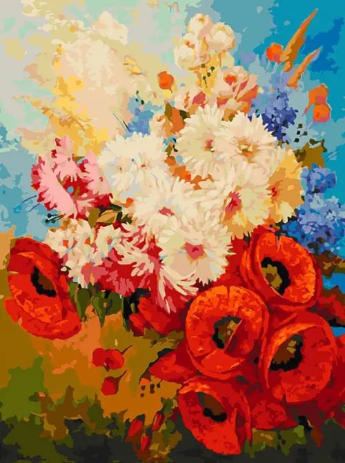 Живопись на холсте. Цветочная мозаика