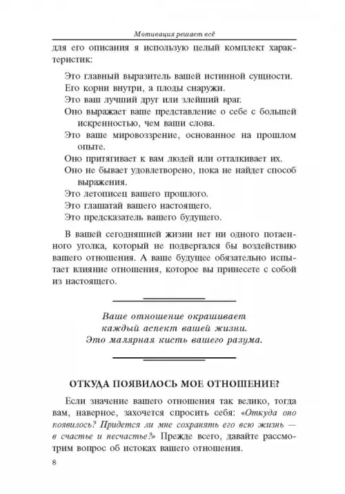 Книга помогла мне понять, насколько важен правильный настрой. Оказалось, что мотивация действительно способна менять жизнь. Автор предлагает конкретные шаги, которые помогают справиться с трудностями и повысить свою эффективность. Очень вдохновляющая работа!