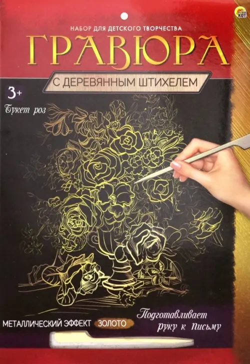Если вы обнаружили ошибку в описании товара «Набор для детского творчества. Гравюра с деревянным штихелем. Букет роз, эффект золото, А4», то выделите её мышкой и нажмите Ctrl+Enter. Спасибо, что помогаете нам стать лучше!