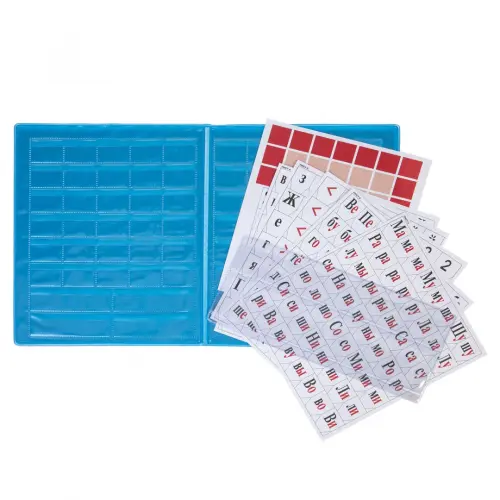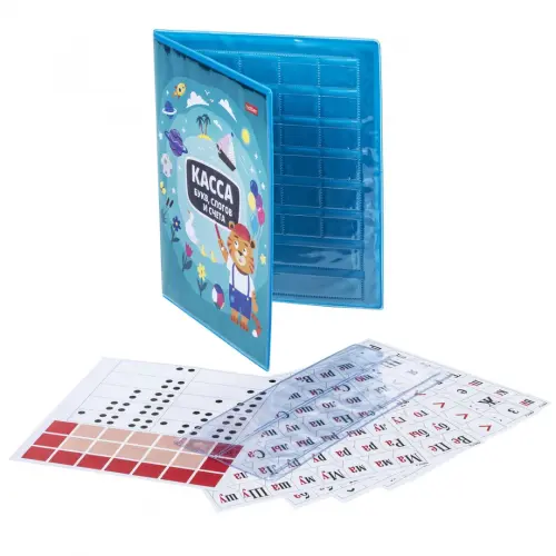 Касса букв, слогов, цифр и счетного материала предназначена для обучения первоклассников чтению и счету. В комплект входит: 8 листов с буквами, слогами, цифрами, картинками для счета и математическими знаками. Папка из ПВХ представляет собой 'кассу': буквы и цифры вырезаются и вставляются в специальные окошки-прорези.