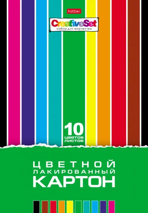 Картон цветной лакированный Creative Set, А4, 10 листов, 10 цветов